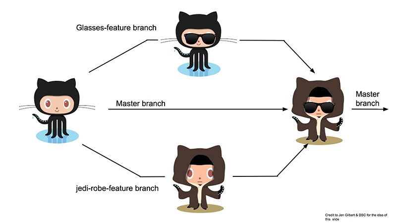 'git merge cats'would take all the changes you made to the “cats” branch and add them to the master.